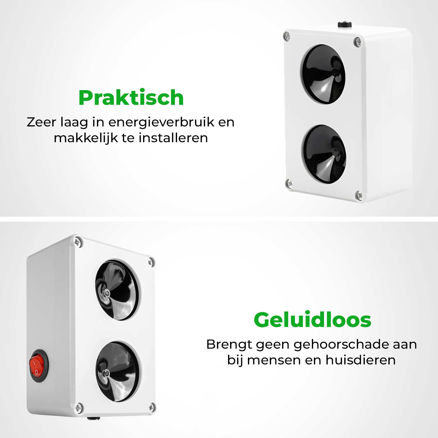 Zeg vaarwel tegen ongewenste bezoekers met onze Repeller! Geen last meer van ongedierte dat zich ophoudt in uw ruimtes, binnen of buiten. Onze Repeller werkt geluidloos en is daarbij niet schadelijk voor uw geliefde huisdieren. Ook is de Repeller weerbestendig, zodat u zich geen zorgen hoeft te maken bij alle weersomstandigheden.
